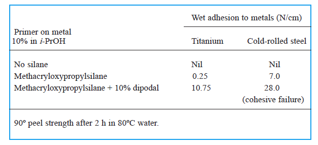 实验结果表明Dipodal硅烷具有更好的与表面结合性,疏水性,耐酸耐盐性质,能够广泛用于胶黏剂行业,粉体改质,表面保护和表面处理等。 5、总结